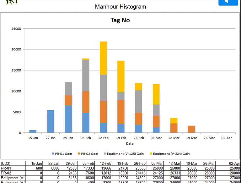 Generate intuitive tabular reports and insightful graphical visualizations, including histograms and S-curves.